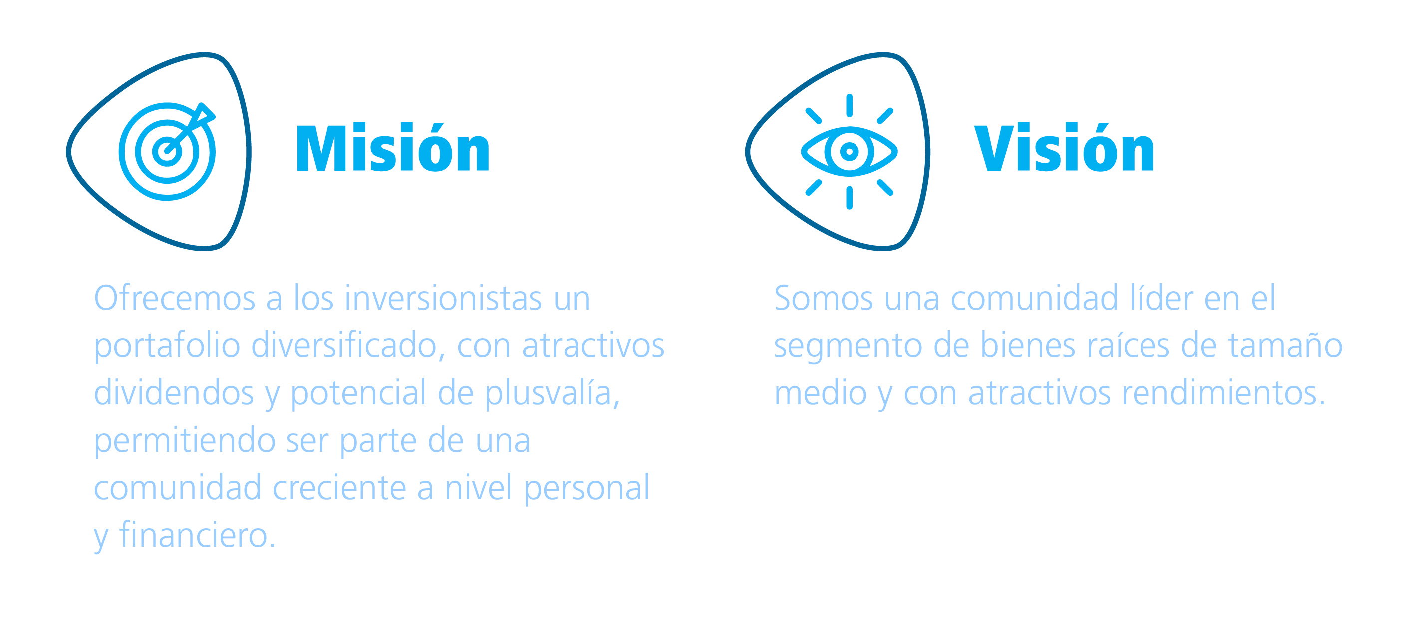 Nuestro objetivo es crear y gestionar una cartera diversificada de Bienes Inmuebles destinados al arrendamiento. Así mismo los contratos de arrendamiento preferentemente serán sobre una base fija de renta, pero en el caso de existir rentas variables estas estarán siempre ligadas a las ventas, para estar acorde la Ley del Impuesto Sobre la Renta, así mismo deberán ser Inmuebles de calidad y generadores de altos ingresos, ubicadas en regiones urbanas y suburbanas en crecimiento en el país.